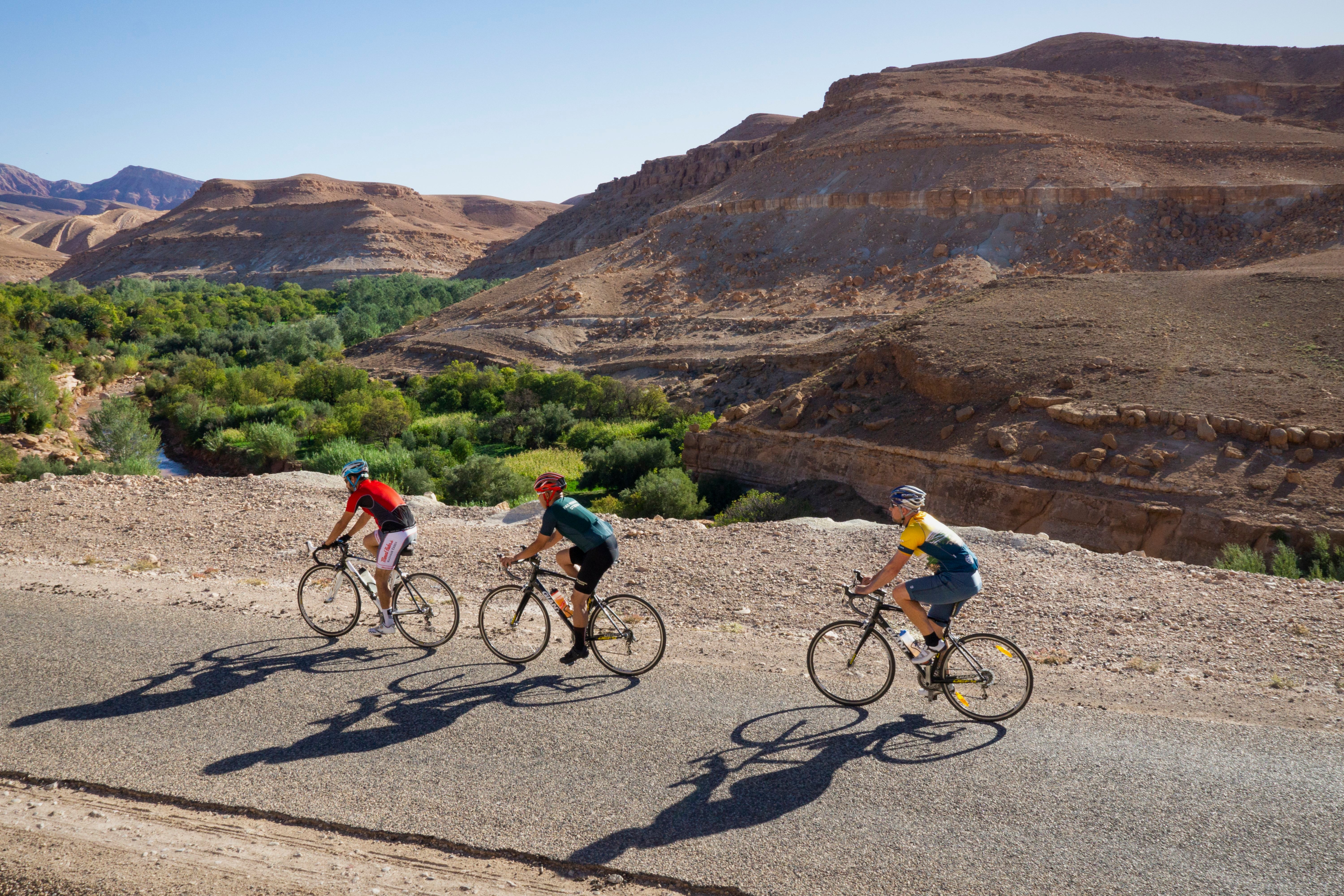 Does this feel like a scene you've encountered when rolling into a quiet French village on a cycling vacation, or even at your local coffee shop? I've been there too. If I know I'm going to stop for lunch, I might carry a pair of shorts in my jersey pocket to pull on over my bike spandex before I head into the cafe. I felt it was important to extend this courtesy to the people of Morocco. Nobody wants to see me walking through the market sporting the spandex look.